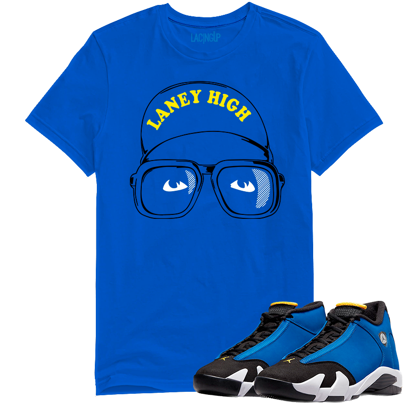 Jordan 14 laney laney high royal tee-Lacing Up